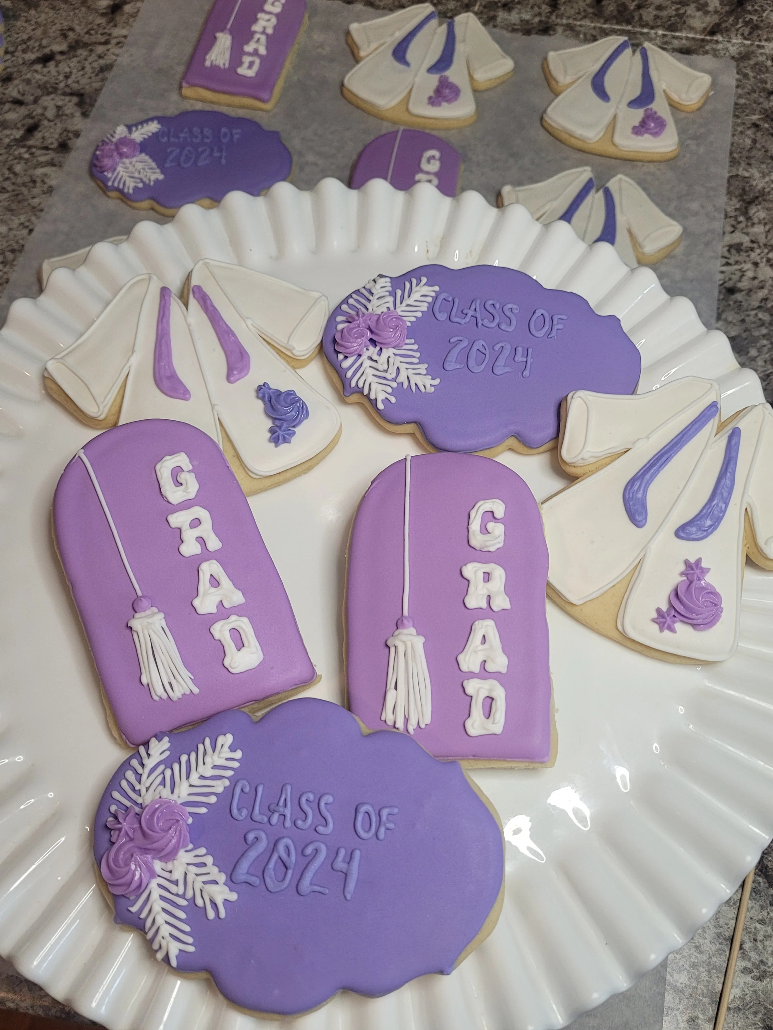 Our sugar cookies are decorated with royal icing. These do not follow our dozen rule, but a minimum order is (6) cookies. Have a shape in mind? Just ask! Cookies start at $3.50 per cookie. Cookie price varies by shape and design work.