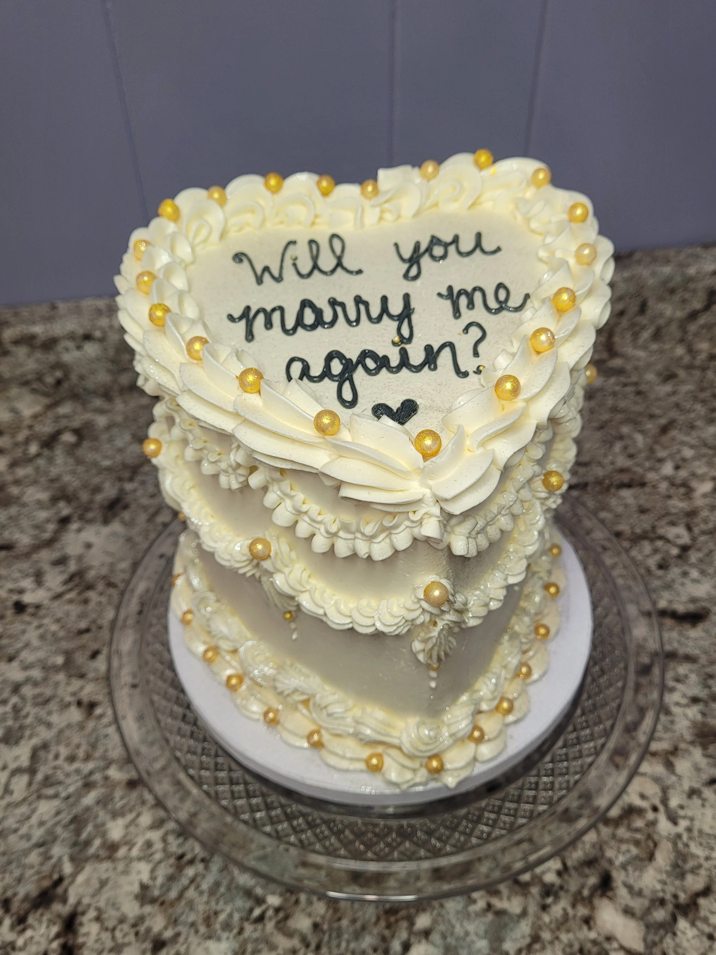 We are happy to help you with everything from cakes, to dessert tables, to edible favors. Need a way to ask your bridal party? We have you covered. Need a cake and tiny desserts for your bridal shower? We can help!